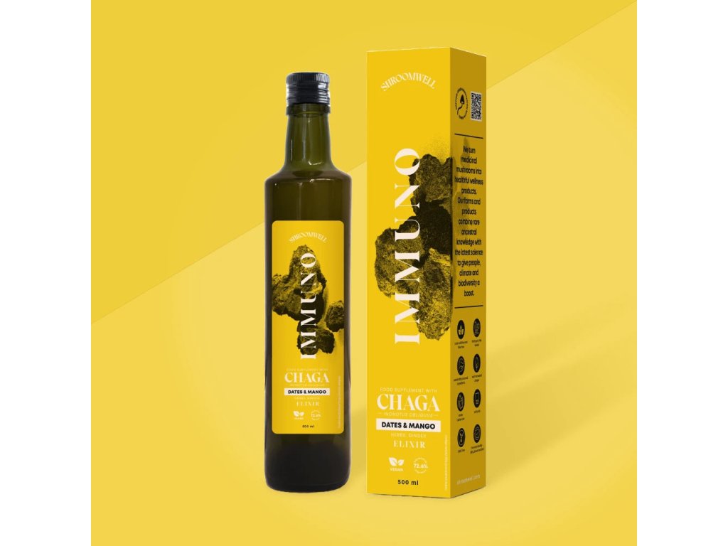 Čaga Immuno Elixír Mango & Dates je chutný nealkoholický nápoj vytvořený pro každodenní podporu vitality a přírodní pohody. Jeho základ tvoří kvalitní extrakt z čagy (Inonotus obliquus), doplněný o datle, mango, zázvor a byliny, které společně vytvářejí jemně sladký a osvěžující tropický profil.